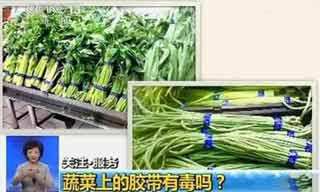 ●[图]超市里捆绑蔬菜的胶带有毒:超市里面捆扎蔬菜的胶带,对人体有害。其主要成分是聚丙烯酸酯,如果市民将粘有胶带残留物的蔬菜进行高温烹饪,或者用一些溶剂清洗,部分化学物质就会分解、溢出。如果长期食用与胶带直接接触的蔬菜,身体健康会受影响。