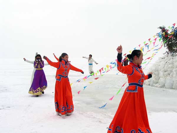 冬捕队员绕敖包祭祀