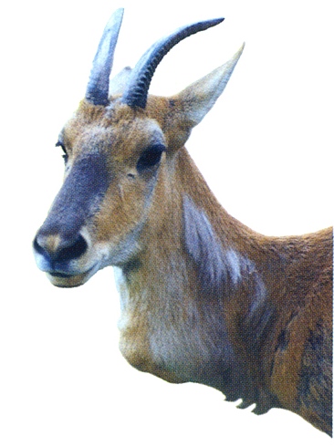 体型纤瘦,四肢细长。冬毛赭黄色。尾短,臀斑白色,明显高过尾基。仅雄羊有角,角短而尖,角上有等距棱环,角尖平滑无节纹。