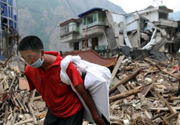 一瞬间,山崩地裂,烟尘冲天。教学楼在声声巨响中开始坍塌。多数学生被废墟掩埋,哭声、喊声、叫声,一声高过一声……幸运的是,在墙角处的杨松尚安然无事。