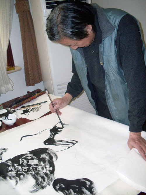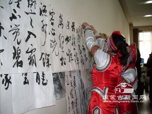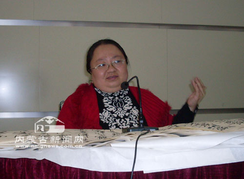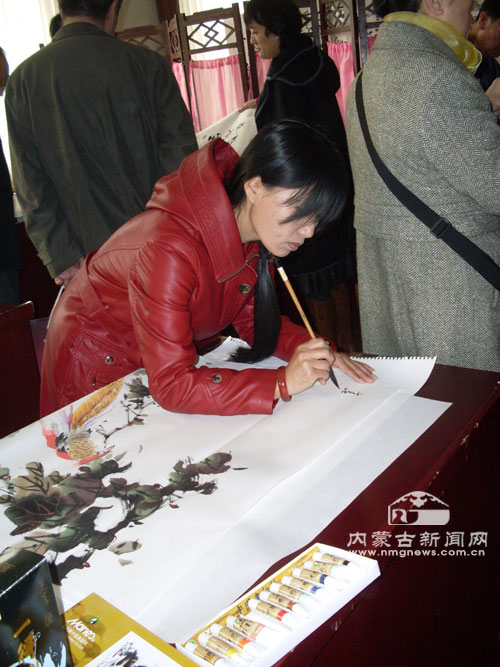 内蒙古书法教育协会的刘平女士现场作画奉献爱心